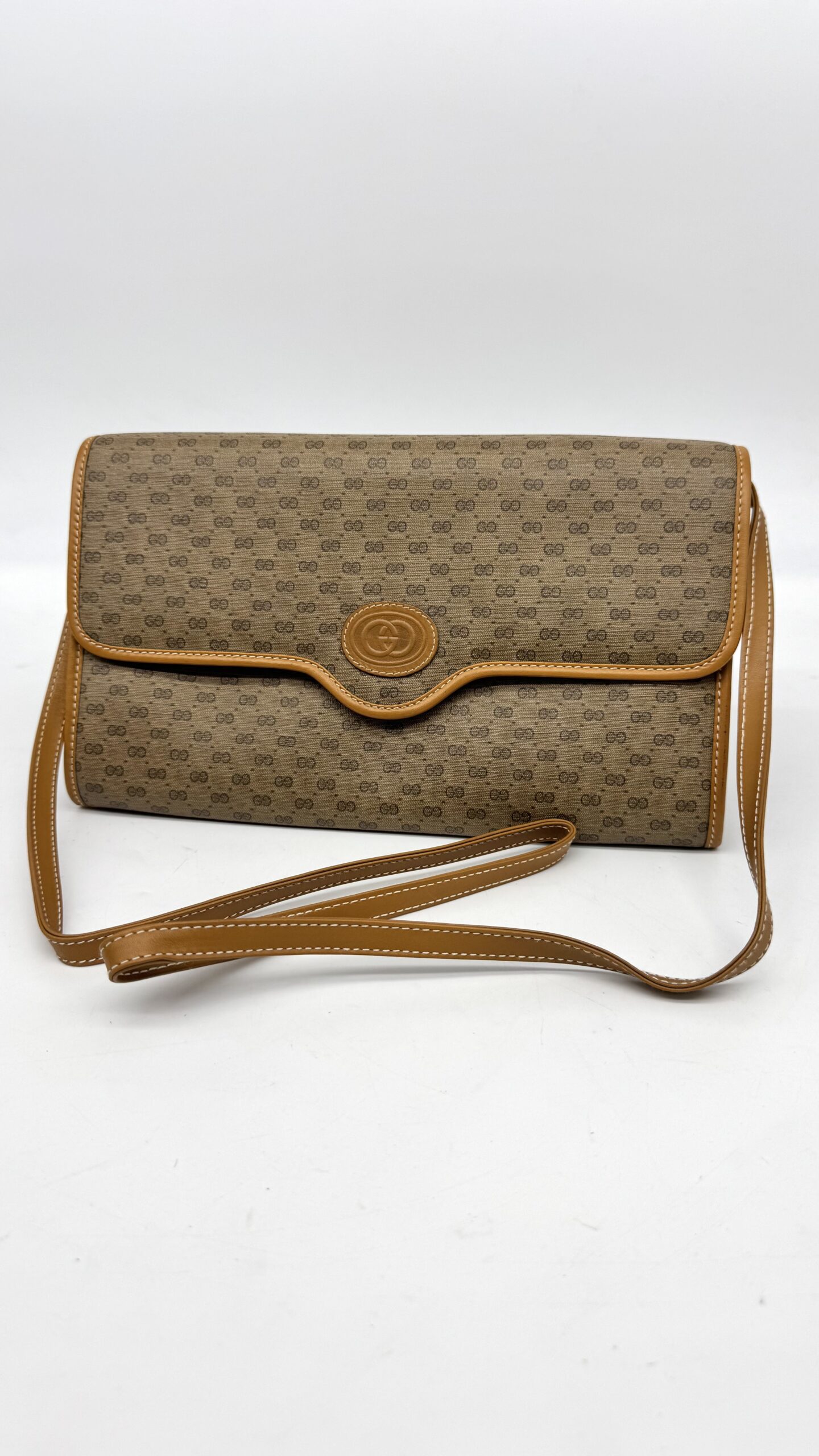 今回お買取りしたのは、オールドグッチ マイクロGG ショルダーバッグ/クラッチバッグ ブラウン。定番のマイクロGGパターンが全体にあしらわれ、取り外し可能なショルダーストラップ付きでクラッチバッグとしても使用可能な2WAY仕様。カラーは落ち着いたブラウンで、年代を感じさせるクラシカルな雰囲気が魅力です。内装の劣化や角スレは少なく、ヴィンテージ品としては全体的に良好な状態でした。